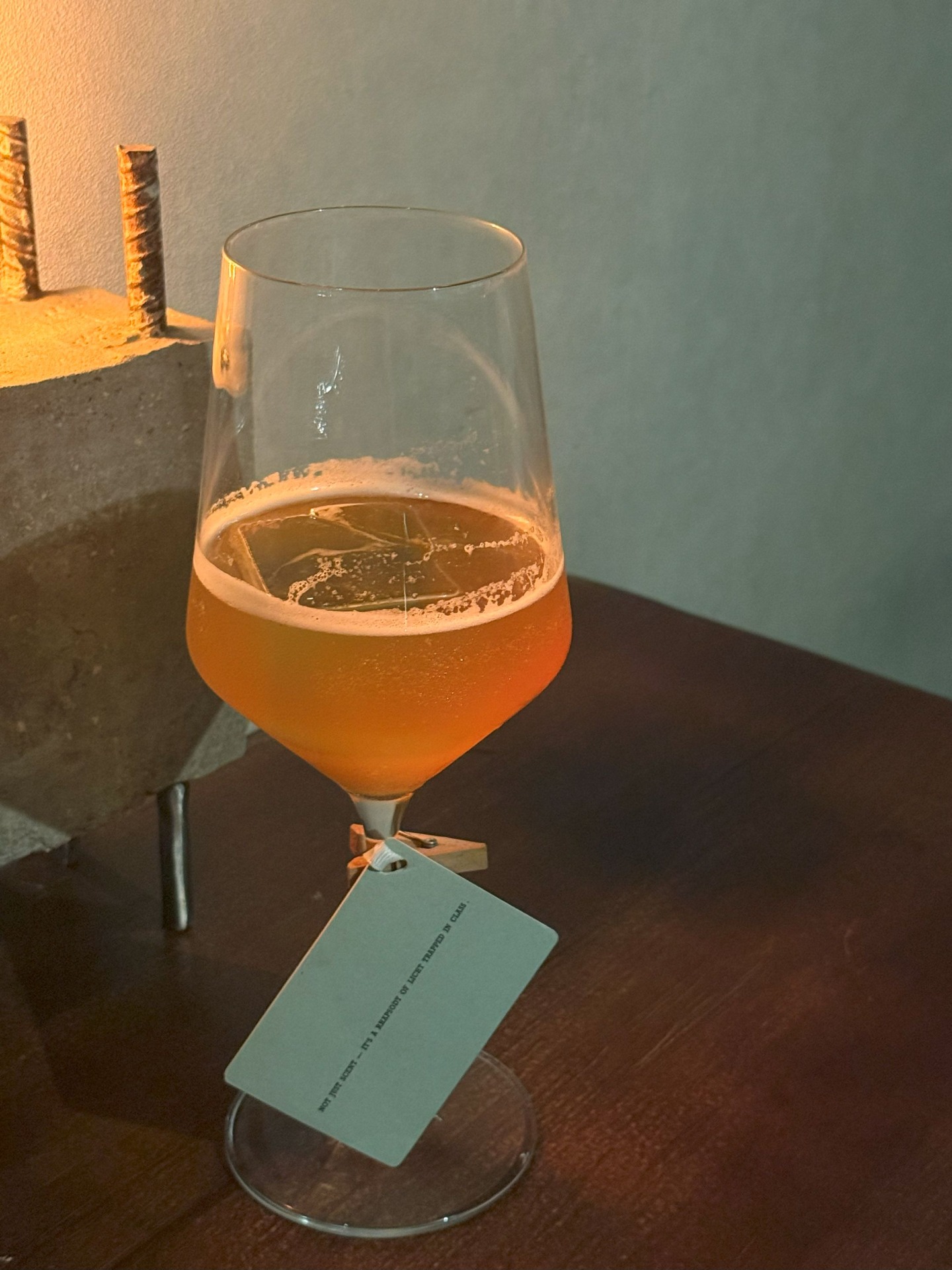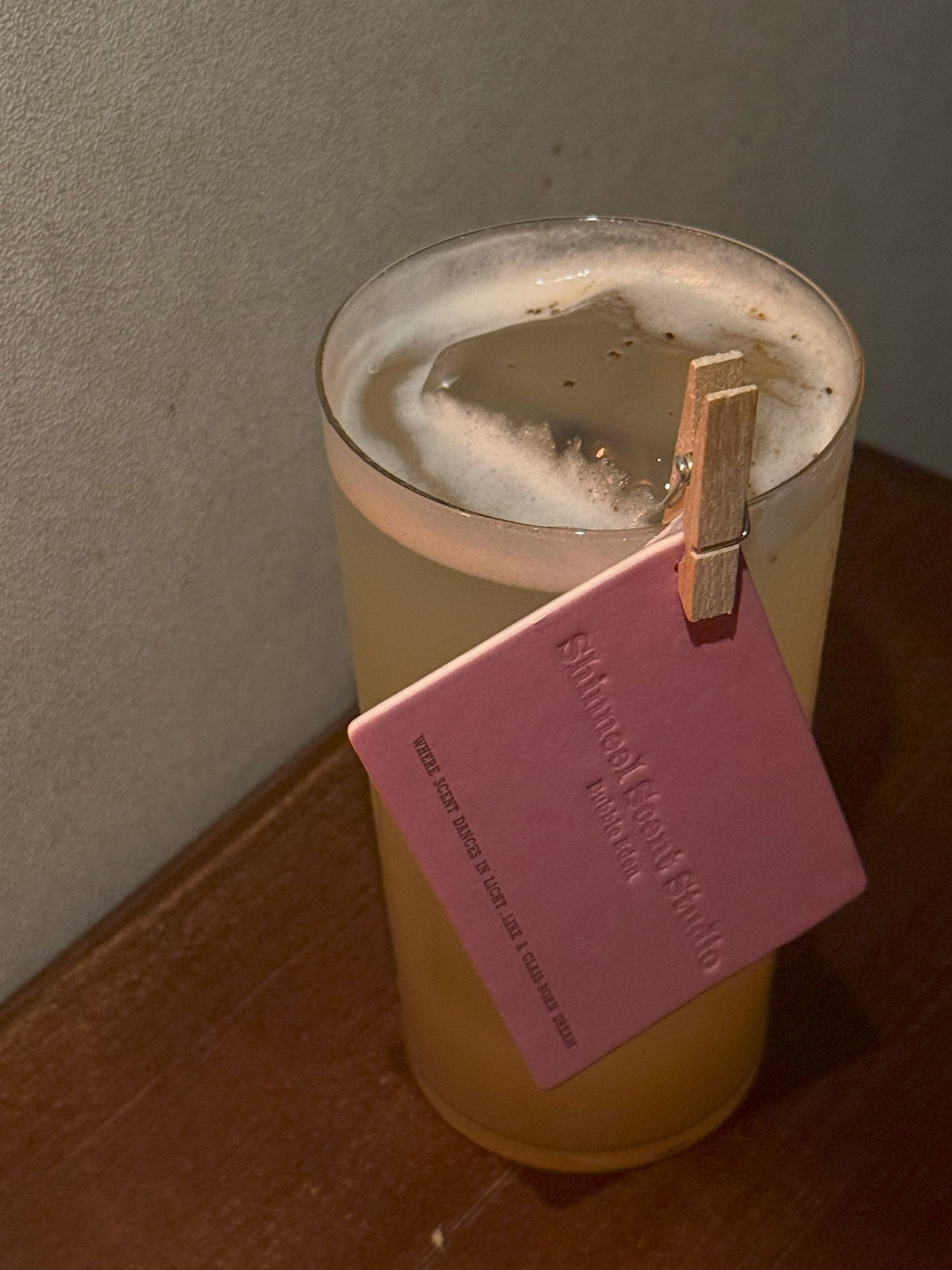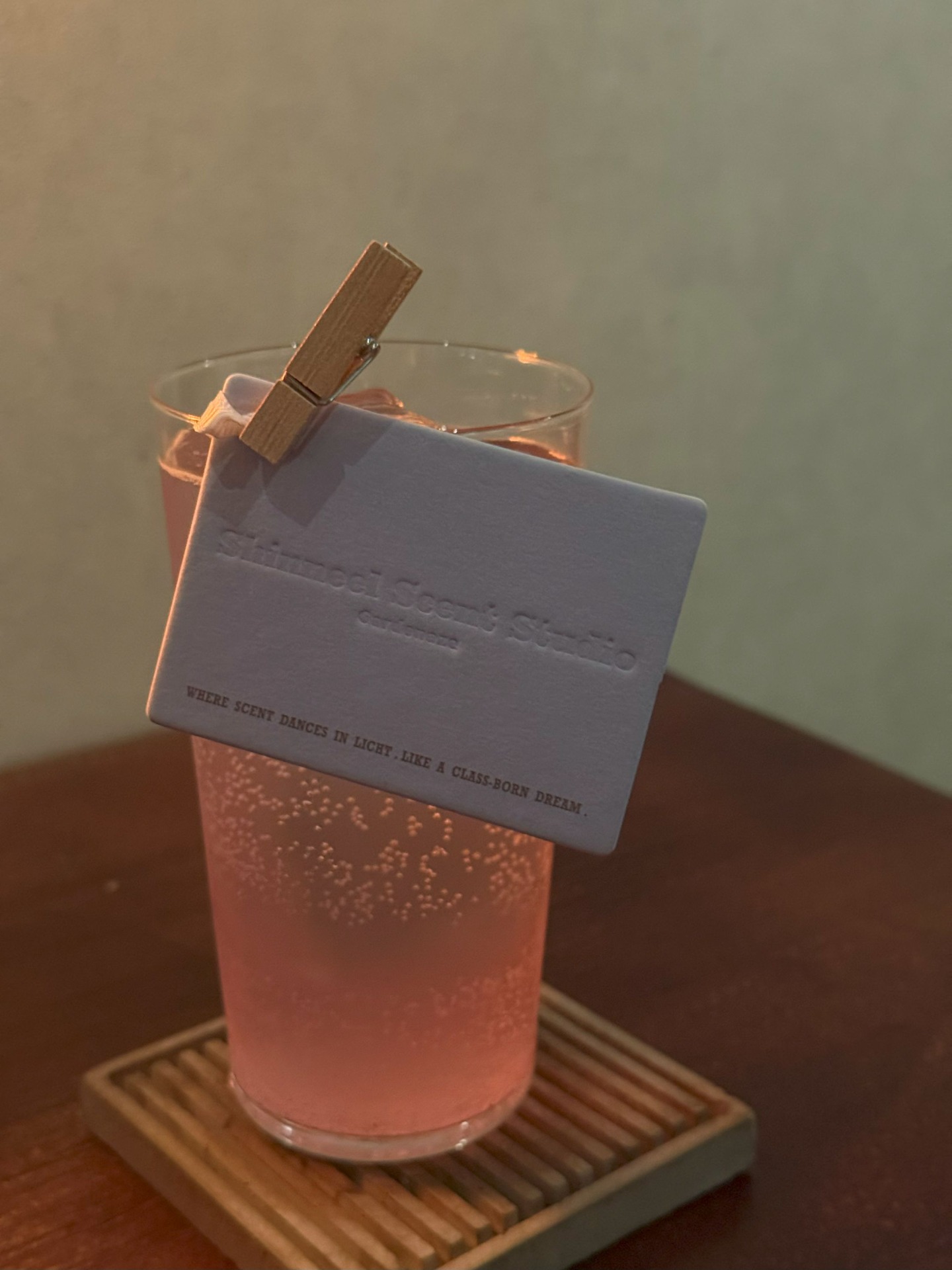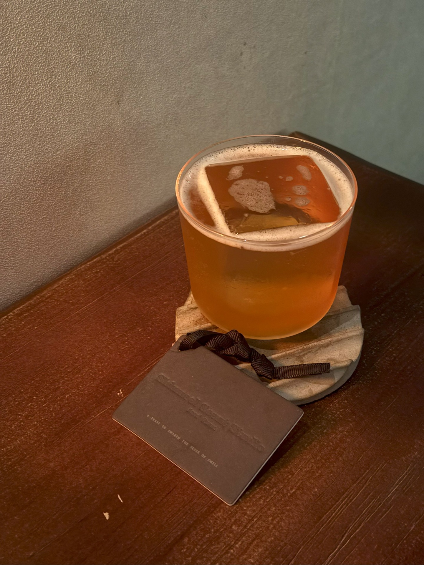 多款香氛聯名調酒皆於店內陸續推出,而主理人最鍾愛的是以 Shinneel「翠影微森」為靈感的調酒。這款香氛的木質尾韻,就像一杯好酒的餘韻,不張揚卻深刻,彷彿替夜晚空間灑上一層低語的濾鏡,靜靜地、卻深深地讓人記得。